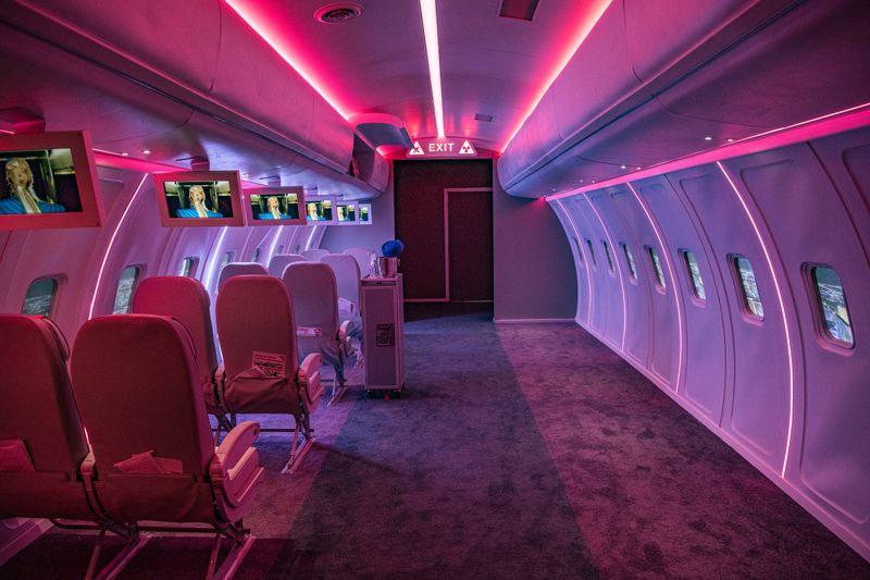 A nifty installation in the “Me Against the Music” room fulfills your dream of letting you be the Madonna in a dance-off against Spears. “Toxic” takes you on a Brit-themed airplane, complete with a champagne cart, “Toxic”-emblazoned barf bags, and a pink telephone that, when answered, has Spears’s voice cooing “It’s Britney, bitch” in your ear before she abruptly hangs up. The “Piece Of Me” room lets you pose on a red carpet and take your own tabloid photo, which is gets splashed onto an Us Weekly-style magazine cover. All the while, guests swipe their RFID wristbands to take part in photo and video installations that they can download on the pop-up’s app.